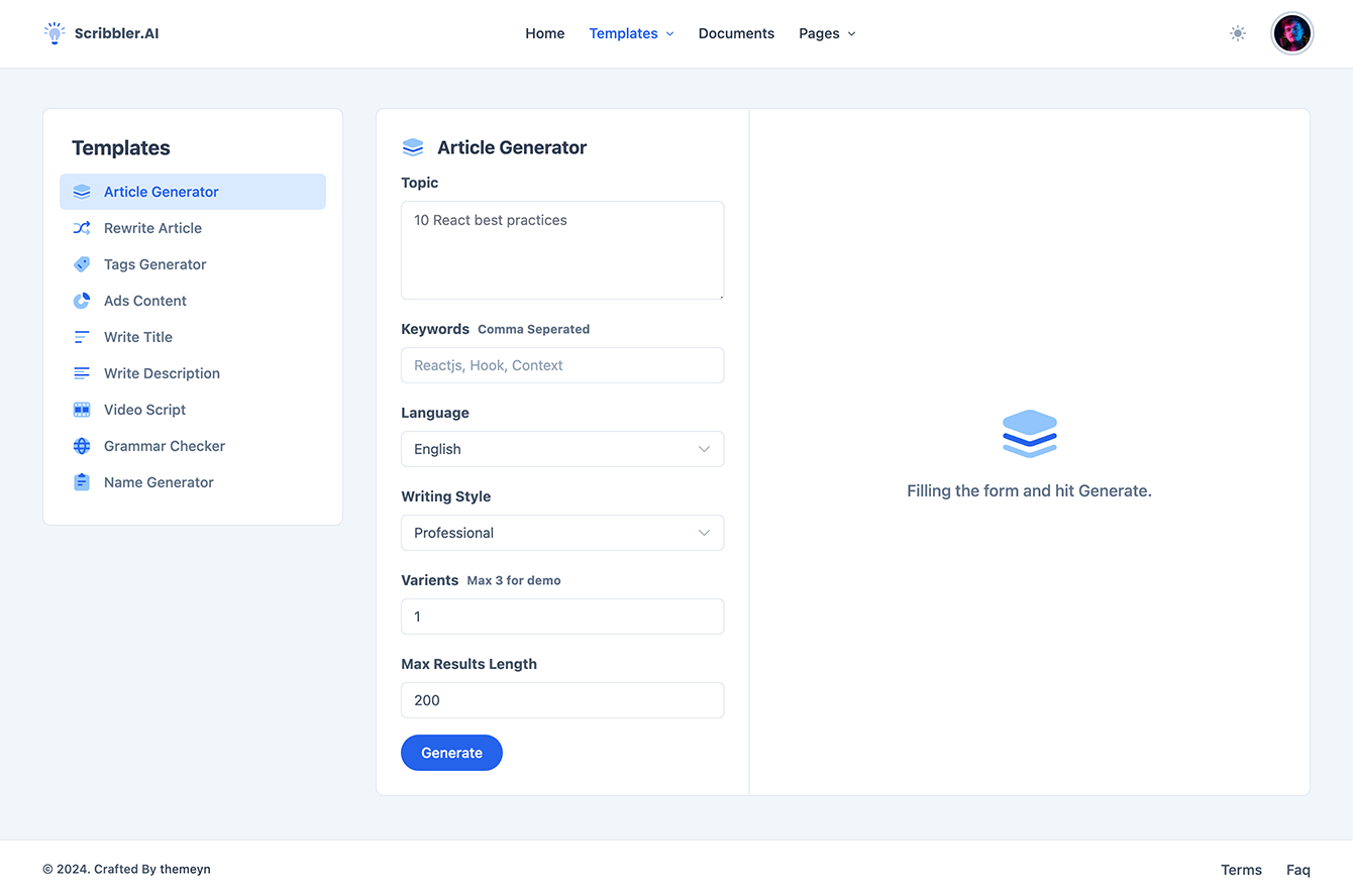Generator is like having a brilliant writing assistant. It adapts to my style, understands nuances, and consistently delivers top-notch content.